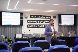 نظمت وحدة التعليم المستمر في كلية الإعلام بجامعة بغداد، اليوم الأحد، ورشة عمل بعنوان "الجرائم الإلكترونية.. الأسباب والدوافع"، قدمتها م.م. يسرى حمزة، على قاعة التعليم المستمر.